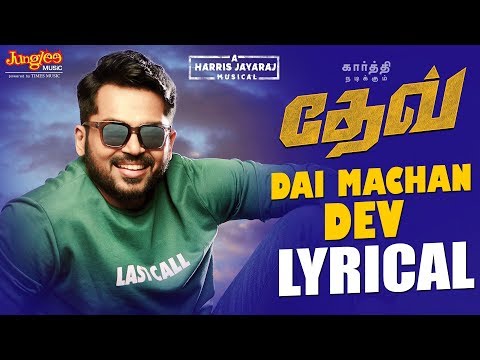 Dei Machan Dev Song Lyrics from movie Dev. Dei Machan Dev song sung by Velmurugan, Maalavika Manoj, Naresh Iyer, Deepika. Dei Machan Dev Song